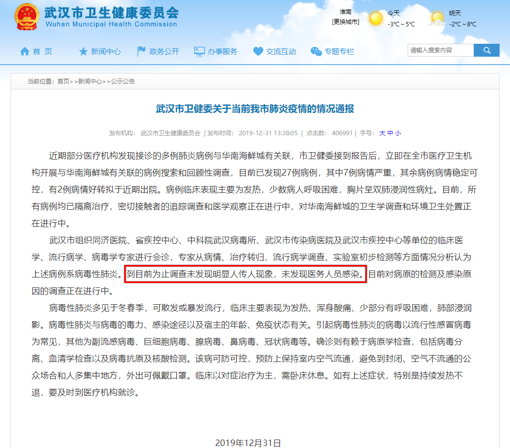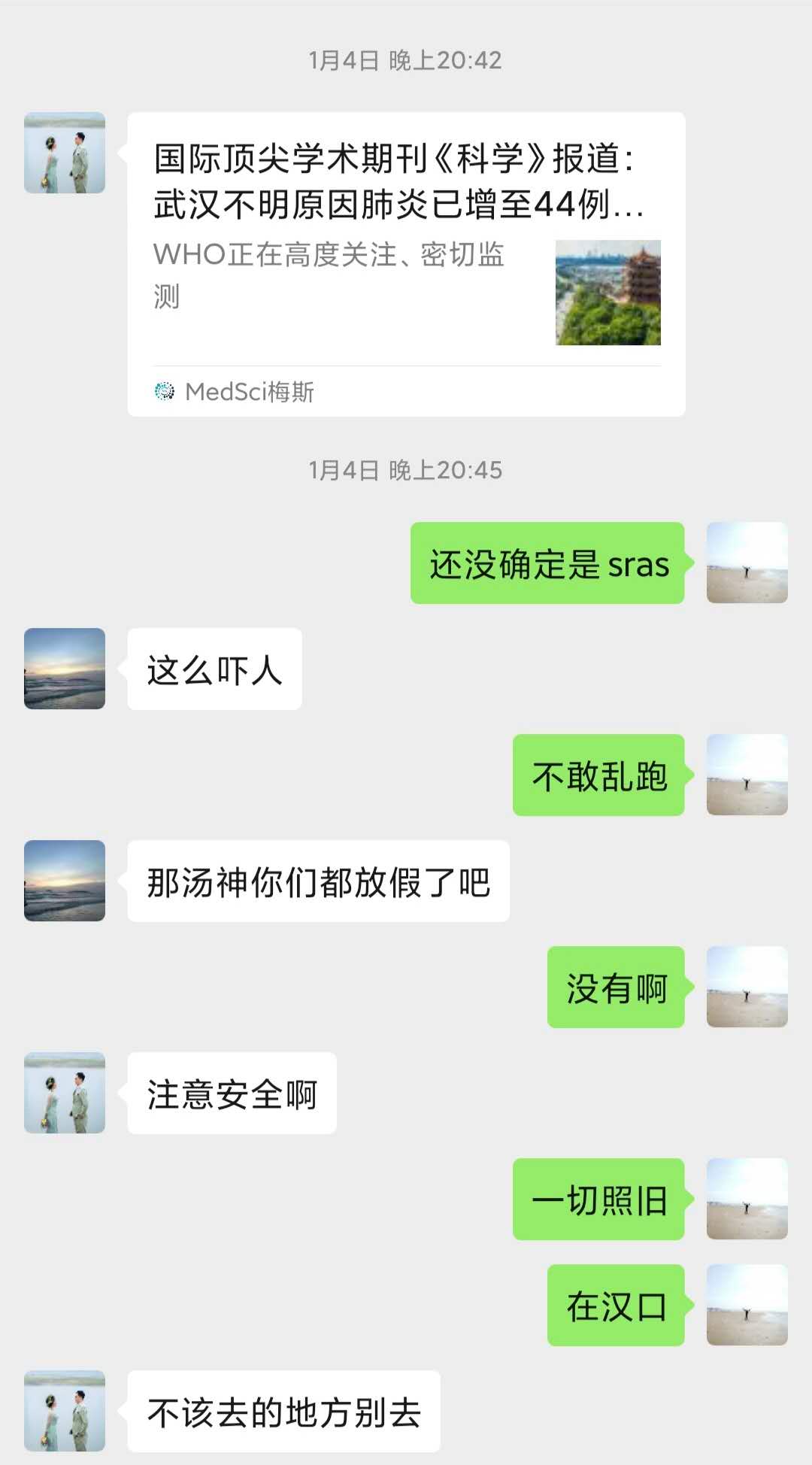 2020年1月初的某天早上,吃完早餐后我像往常一样在单位的一楼大厅等电梯,当我电梯从负一层上来时就听见曹所和几个同事在电梯里讨论说:“今天有新闻报道,汉口那边又发现了冠状病毒……,但好像没有非典厉害……”,“那不是和SARS很像……”。这便是我第一次听到关于冠状病毒的新闻。