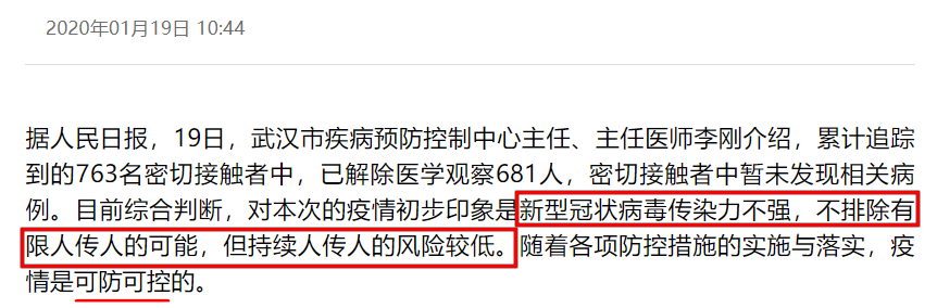 一月中上旬时,由于春节将至,大家渐渐地从繁忙的工作解放出来。这个时候,大家在释放压力的同时,都在进行年终总结和明年规划。再加上新闻一直报道说疫情“未见明显人传人现象”、“可防可控”等。此时,我们每天照常拼车上下班,偶然也还是会去坐公交和地铁,周围没有任何不同寻常的地方,根本没有人意识到疫情正在我们身边蔓延,更别说采取防控措施了。这种毫无警惕的状态一直持续到1月20号。
