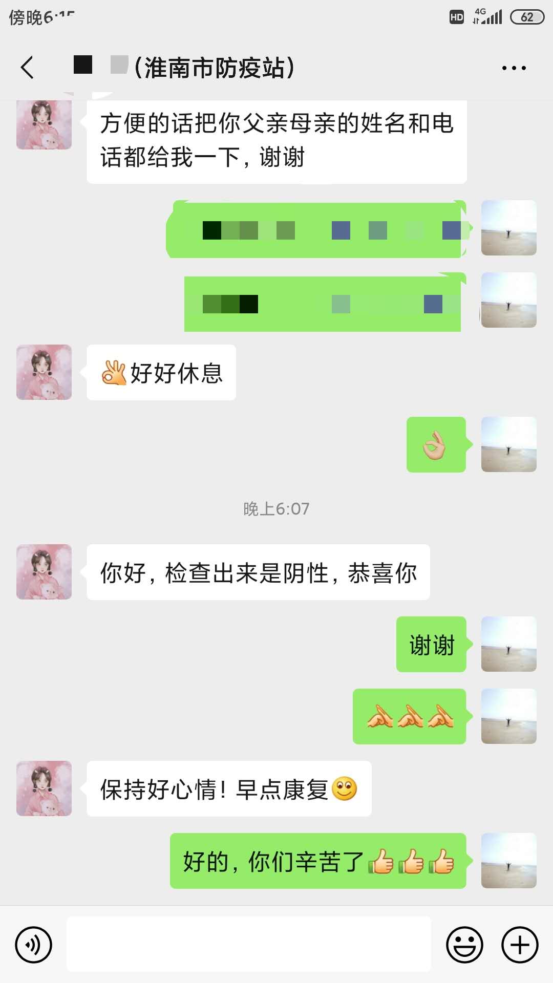 2月4日早上,我很早便起了床,一量体温是36.3℃,于是心中窃喜,但仍感觉没有胃口,只是喝了瓶安慕希对付了一下。为了缓解心理压力,除了躺在在床上晒太阳,我还时不时地下床简单锻炼一下身体。本以为核酸检测结果上午就会出来,可谁知道到了中午仍然没有结果。到了中午,我的体温再次回升到了37.4℃,由于没有胃口,家里委托居委会给我送的饭我也没吃几口就被放在了柜子上。下午18:07,我突然收到市疾控中心那边发来的消息:核酸检测结果是阴性。收到这一消息,我整个人立马精神了起来,并在第一时间将其分享给我的家人和朋友。